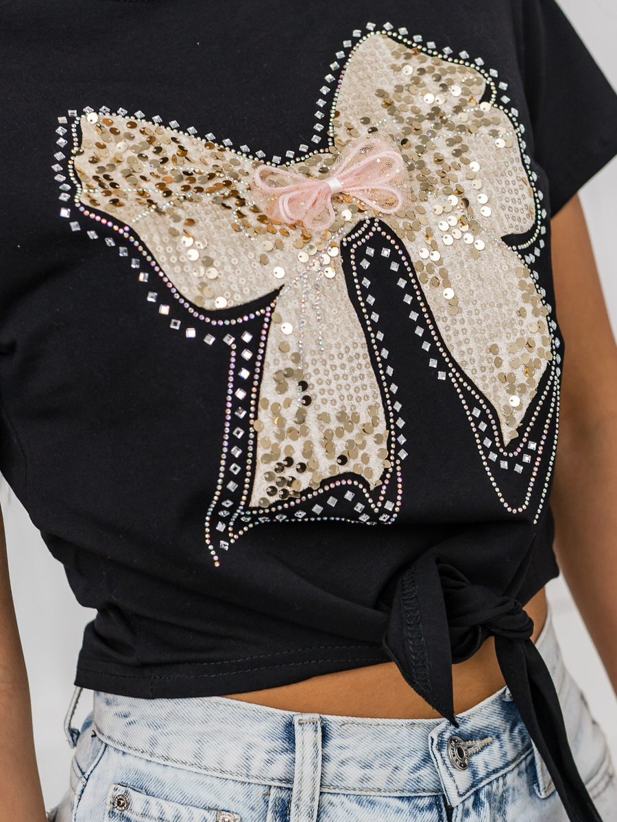 Opiniile utilizatorilor despre Tricou negru de dama cu aplicatie Bolf 96T612