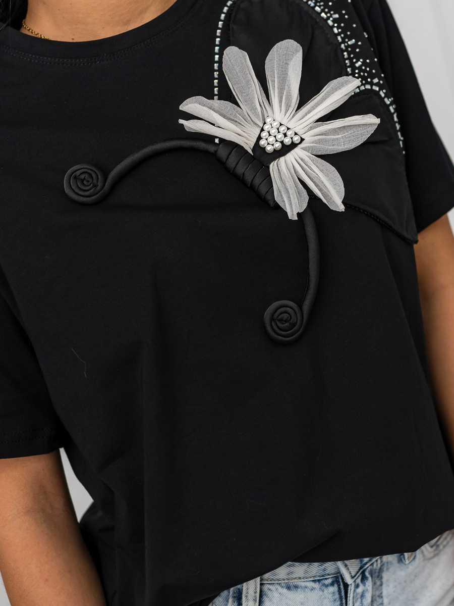 Opiniile utilizatorilor despre Tricou negru de dama cu aplicatie Bolf 96T633