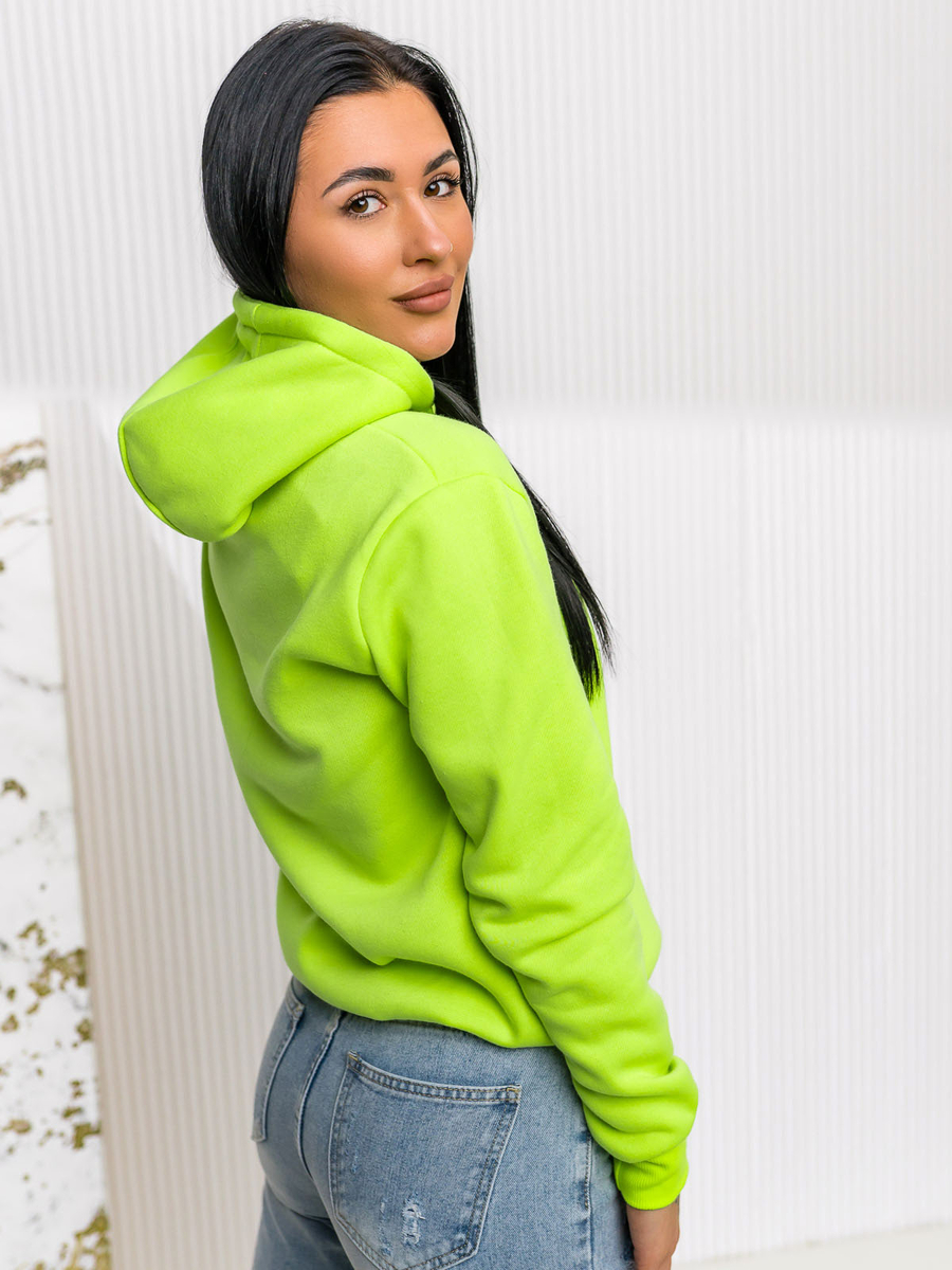 Hanoracul de damă Bolf W02A1 verde deschis este îmbrăcat peste cap. Croiala clasica confectionata din material moale la atingere. Bluza poate fi cumpărată in diverse culori originale. Are glugă reglabilă cu șnur și buzunar practic tip cangur in față. Terminația bluzei cu elastice largi. Bluza se recomandă pentru femeile ce preferă minimalismul și stilul sport in modă. Este foarte comodă și stilată. La sigur va fi must have in garderoba femeilor. Model clasic simplu se va potrivi în ținutele zilnice și de strada Hanoracul are buzunar mare, la sigur trebuie sa ai și tu in garderoba ta. Bluza se va potrivi in diverse ocazii libere, relaxate in oras.
