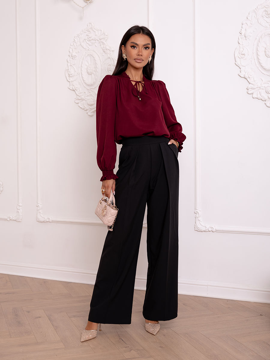 Opiniile utilizatorilor despre Bolf 546 Bluză elegantă pentru femei burgundă cu cravată