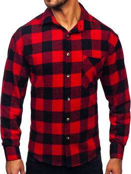 Cămașă roșie cu mânecă lungă în carouri de flanel pentru bărbați Bonley 2025-1