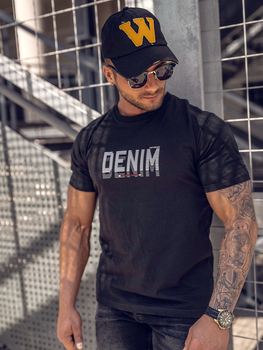Tricou bărbătesc din bumbac negru cu imprimeu Bolf 14787