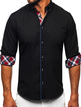 Cămașă neagră elegantă pentru bărbați cu mâneci lungi Bolf 24740