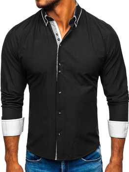 Cămașă pentru bărbat cu mâneca lungă neagră Bolf 5791