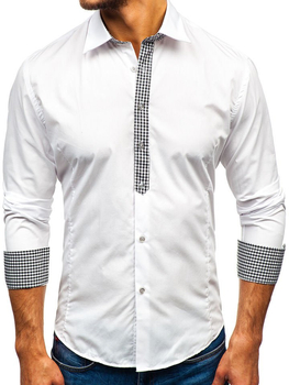 Cămașă elegantă albă cu mâneca lungă Bolf M13