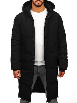 Jachetă neagră de iarnă pentru bărbați, lungă, matlasată Bolf 91M9912