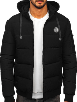Geacă neagră de iarnă pentru bărbați cu glugă Bolf 19M1292