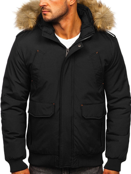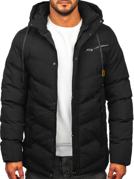 Geacă neagră de iarnă pentru bărbați cu glugă Bolf 19M1292