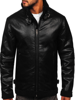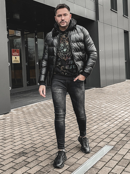 Geaca de iarna pentru barbati din piele neagra Bolf 8830