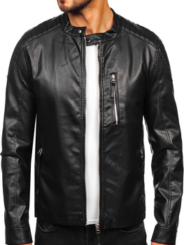 Geacă motociclist de iarnă matlasată din piele neagră pentru bărbați Bolf 11Z8186