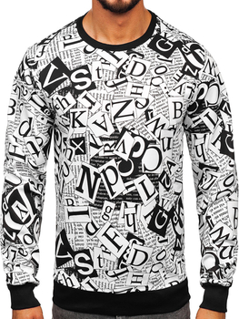 Hanorac pentru bărbați alb-negru fără glugă cu imprimeu Bolf 8B1135A
