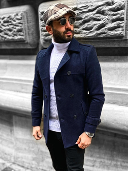 Palton bleumarin cu guler inalt și curea Bolf 0001