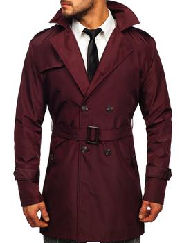 Trenci pentru bărbați albastru deschis la două piept, cu guler înalt și curea Bolf 0001