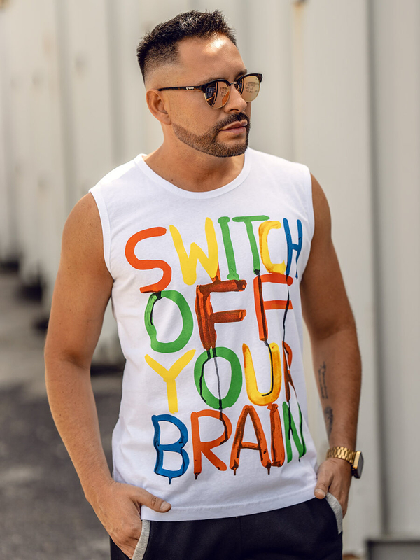 Tricou bărbătesc alb cu imprimeu Bolf 0303A