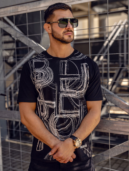 Tricou negru bărbătesc din bumbac cu imprimeu Bolf KS1997A