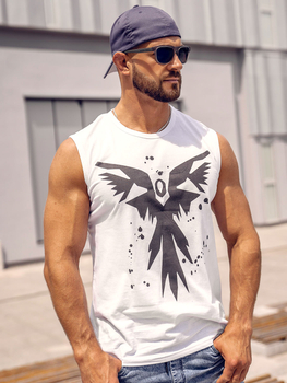 Tricou bărbătesc din bumbac alb cu imprimeu Bolf 14780A