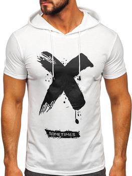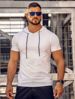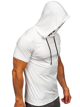 Tricou alb pentru bărbați, neimprimat, din bumbac, cu glugă Bolf 14513A
