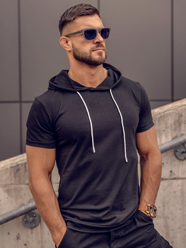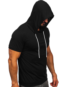 Tricou bărbătesc din bumbac negru fără imprimeu cu glugă Bolf 14513A