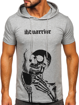 Tricou gri pentru bărbați din bumbac simplu, cu glugă Bolf 14513A