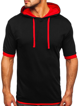 Tricou cu glugă și imprimeu negru-roșu Bolf 8T981A