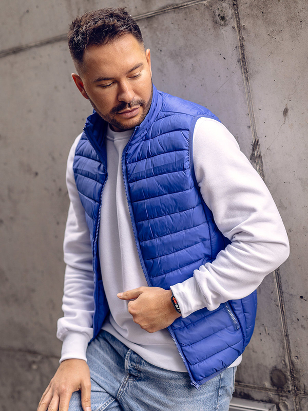 Vestă cu glugă matlasată albastră bărbați Bolf 1189