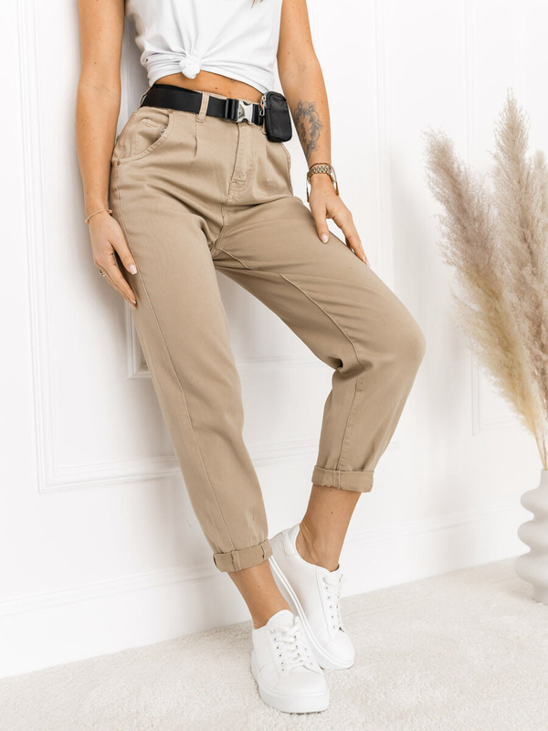 Blugi bej cu talie înaltă curea și geantă dame Bolf LA689